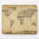 A map of the world made from a collage of old and vintage sheet music, including some handwritten scores and notes, on an antique style background.