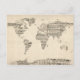 A map of the world made from a collage of old and vintage sheet music, including some handwritten scores and notes, on an antique style background.
