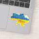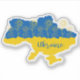 Map of Ukraine decorated with sunflowers and handwriting stylised typography in Ukrainian flag colours yellow and blue