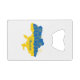 Map of Ukraine decorated with sunflowers and handwriting stylised typography in Ukrainian flag colours yellow and blue