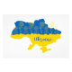 Map of Ukraine decorated with sunflowers and handwriting stylised typography in Ukrainian flag colours yellow and blue