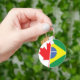 Illustration of a Canadian maple leaf and a Brazilian flag divided in half