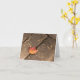 A single maple leaf on weathered wooden boards signifies the fall season. An orange and red leaf and brown weathered boards show off the subdued colours of the season. Share your love of fall and thanksgiving with this blank greeting card. The minimalist photograph is also available as a poster and as post cards which are great for personalised thanksgiving invitations.