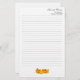 Personalised stationery with speciality paper available (basic white is shown) in a Fall theme. Golden yellow and orange-red maple leaves decorate the bottom of this lined writing paper with templates for custom text at the top. Add a name in script and address (two lines) beneath. Delete all example text to order this paper blank.