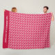 Fleece blanket with red and white maple leaves on a pink background. Charcoal background is also available.