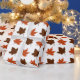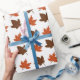Brown and burnt orange maple leaves on autumn gift wrap.