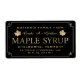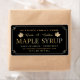 This economical maple syrup shipping-sized label is classy enough to be used on all your maple syrup containers and jugs. Customise with your business name, address and maple syrup volume in ounces and milliliters. There is a handy list of common container sizes with their conversions right in the form field where you fill in your information. Included is a form field to add your email, webpage or phone number. Black background with gold text and vintage stylised border. For a special touch, the word “maple syrup” has a gold gradient. The Grade of Syrup is written in an elegant script font. Two actual sugar maple leaves appear on the left and right of the Maple Syrup Grade, with a sepia gradient to appear gold, but the gradient may be removed if you prefer a green leaf. Happy Sugaring!