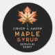 Editable homemade maple syrup canning label featuring a maple leaf illustration. Make your own canning labels for your favourite homemade recipes. Perfect for preserves, homemade gifts or as kitchen pantry organiser.