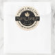 Personalise this maple syrup label with the business name, location, grade, and volume (list included of US and metric conversions for popular sizes). Central metallic gold maple in black circle. State name in curved text near bottom of label. Ivory background.