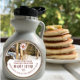 Show everyone where maple syrup comes from with this maple syrup label featuring a group of tapped sugar maple trees and a red maple leaf at the top. Brown grunge border. Moose looks onto the scene from the left. Personalise with your business name, maple syrup grade, address and volume.