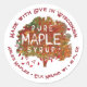 Pure Maple Syrup is written on a colourful autumn maple with little hearts falling from the tree like autumn leaves. Editable text reads “Made with Love in (your state). Add your business name and volume.