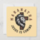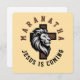 Maranatha Jesus is coming, this Christian design features a male lion head with a cross and text saying, "Maranatha, Jesus is coming".