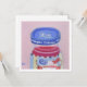 Oil painting print of a jar of maraschino cherries with pink background.