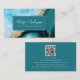 Marble Agate Teal Gold Glitter QR Code Business Card