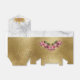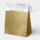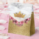 Chic Quinceañera or special occasion favour gift box, with graphics of a marbled look done in white and grey, on the top and a gold foil look on the main box part. Graphics of pink and red flowers, gold glitter and a golden crown decorate the pretty favour box. Personalise the red text for your event.