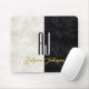 Modern, black and white marble in combination with gold custom casual font name. Simple, minimalist mouse pad, with giant initials. All graphic elements are free for change, move or even remove - make your best combination!