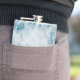 The flask itself is fine. It’s a cheap flask, obviously bought in bulk, however am prepared to overlook that. Given that it is a personalized item, I would have liked to have seen gift boxing instead of the generic packaging. Terrible printing, and/or quality. It’s a cheap, tacky vinyl. It is not cut straight and is also applied in a way that it is overhanging the bottom, causing the glue to catch on items and it will eventually roll and tear, damaging the wrap.