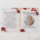 Customise this modern, elegant funeral program with your own photo and text to create a special tribute to your Beloved. An 'In Loving Memory' program featuring a marble and burgundy blush flowers with gold accent memorial program. On the front cover is a photo of your loved one, their name, dates, the memorial venue, and the date of the event. On the inside is an obituary and order of service, and on the back is a thank you note and the venue of the