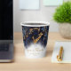 An abstract background reminiscent of marble in shades of navy blue veined with glittering gold is the backdrop for elegant script text and modern design layouts in the pieces of this beautiful wedding suite. The wedding paper cup shown here features the above plus optional flowing script text of 'Love & Thanks' and a template to add the bride and groom's names and wedding date. Search ID644 to see all the coordinating pieces in this set.