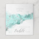 An abstract background reminiscent of marble in shades of soft teal through deep aqua blue and veined with glittering silver is the backdrop for elegant script text and modern design layouts in the pieces of this beautiful wedding suite. The wedding table place card shown here features the above plus optional flowing script text of 'table' and a template to add your names and wedding date on the reverse. Search ID644 to see all the coordinating pieces in this set.