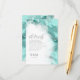 An abstract background reminiscent of marble in shades of soft teal through deep aqua blue and veined with glittering silver is the backdrop for elegant script text and modern design layouts in the pieces of this beautiful wedding suite. The wedding details card shown here features the above plus optional flowing script text of 'details' and a template to add any pertinent wedding information for your guests such as travel arrangements, and event location maps. Search ID644 to see all the coordinating pieces in this set.