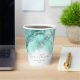 An abstract background reminiscent of marble in shades of soft teal through deep aqua blue and veined with glittering silver is the backdrop for elegant script text and modern design layouts in the pieces of this beautiful wedding suite. The wedding paper cup shown here features the above plus optional flowing script text of 'Love & Thanks' and a template to add the bride and groom's names and wedding date. Search ID644 to see all the coordinating pieces in this set.