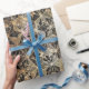 A dark marble texture coloured in deep blacks and greys with gold veins is combined with a faux gold foil textured geometric pattern.