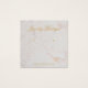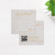 A simple but elegant marble and gold earring display card: just golden text on white marble background. The name is written in an elegant calligraphy' under it, the erring places indicated by two very small circles. The website written close the lower border.