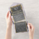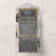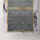 This elegant All In One wedding invitation features a dark grey center on a black and white marble background, framed with gold roses and leaves, embellished with a silver scroll heart. Designed to coordinate with the "Elegant Marble, Gold Leaves Frame & Scroll Heart" Wedding Collection. To change details, click «Personalize». To move the text or change the text size, font, or color click «Click to customize further»