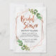 Looking for a modern bridal shower invitation? This design features a faux marble background and faux rose gold brush calligraphy heading and some greenery. I've also added some geometric thin line art also in rose gold on both the front of the invitation. More designs in this style are available at the store. This modern marble rose gold line art bridal shower invitation is ready to be personalized and is ideal for someone who likes marble and faux rose gold foil invitations.