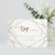 These stylish, modern wedding RSVP cards feature a white marble look with faux copper geometric lines and trendy typography.