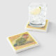 Marble lovebird coaster. Image is a reproduction of an original watercolor. Cork backing.