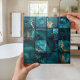 This luxurious ceramic tile design showcases rich teal marble veined with shimmering gold for an elegant, high-end look. The pattern captures the serene depth of ocean hues with a touch of metallic brilliance. Ideal for kitchen backsplashes, bathroom walls, fireplace surrounds, or accent installations, these tiles bring a sense of refined sophistication to any interior. This design is part of a coordinated trio that can be mixed and matched for a rich, natural-looking variation across multiple tiles, perfect for coastal modern, contemporary, or upscale classic décor. Search ID1186a, b and c to see each of the variations. Note: design contains generative content.