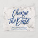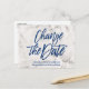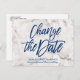 Marble Navy Blue glitter script change the date Announcement Postcard