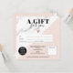 Modern chic black and white marble pattern and editable pastel blush pink colour block simple square gift certificate, add your logo, with a rose gold heart. Perfect birthday or Christmas gift certificate voucher.