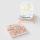 The coasters are gorgeous, a quality feel and heavy weight. They look like a precious archeological find. A rustic stone juxtaposed with a modern floral black and white print. I like the way the print goes slightly imperfect on the cut stone edges giving them a kind-of natural beauty.