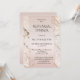 Rehearsal dinner invitation featuring festive rose gold floral swirls on a blush pink and marble background with light sparkles.