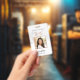 Personalize these vertical badges with an employee photo and name, along with two lines of additional custom text for employee ID number, role or title, location, or other key data, adorned with a pair of stylist's scissors in faux rose gold foil. Perfect for hair salons or styling studios. Additional custom text field located on the back for return information or other details.