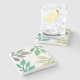 The coasters are gorgeous, a quality feel and heavy weight. They look like a precious archeological find. A rustic stone juxtaposed with a modern floral black and white print. I like the way the print goes slightly imperfect on the cut stone edges giving them a kind-of natural beauty.