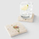 The coasters are gorgeous, a quality feel and heavy weight. They look like a precious archeological find. A rustic stone juxtaposed with a modern floral black and white print. I like the way the print goes slightly imperfect on the cut stone edges giving them a kind-of natural beauty.