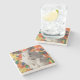 The coasters are gorgeous, a quality feel and heavy weight. They look like a precious archeological find. A rustic stone juxtaposed with a modern floral black and white print. I like the way the print goes slightly imperfect on the cut stone edges giving them a kind-of natural beauty.