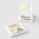 The coasters are gorgeous, a quality feel and heavy weight. They look like a precious archeological find. A rustic stone juxtaposed with a modern floral black and white print. I like the way the print goes slightly imperfect on the cut stone edges giving them a kind-of natural beauty.
