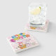 The coasters are gorgeous, a quality feel and heavy weight. They look like a precious archeological find. A rustic stone juxtaposed with a modern floral black and white print. I like the way the print goes slightly imperfect on the cut stone edges giving them a kind-of natural beauty.