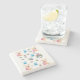 The coasters are gorgeous, a quality feel and heavy weight. They look like a precious archeological find. A rustic stone juxtaposed with a modern floral black and white print. I like the way the print goes slightly imperfect on the cut stone edges giving them a kind-of natural beauty.