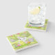 The coasters are gorgeous, a quality feel and heavy weight. They look like a precious archeological find. A rustic stone juxtaposed with a modern floral black and white print. I like the way the print goes slightly imperfect on the cut stone edges giving them a kind-of natural beauty.