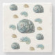 The coasters are gorgeous, a quality feel and heavy weight. They look like a precious archeological find. A rustic stone juxtaposed with a modern floral black and white print. I like the way the print goes slightly imperfect on the cut stone edges giving them a kind-of natural beauty.