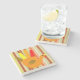The coasters are gorgeous, a quality feel and heavy weight. They look like a precious archeological find. A rustic stone juxtaposed with a modern floral black and white print. I like the way the print goes slightly imperfect on the cut stone edges giving them a kind-of natural beauty.