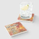 The coasters are gorgeous, a quality feel and heavy weight. They look like a precious archeological find. A rustic stone juxtaposed with a modern floral black and white print. I like the way the print goes slightly imperfect on the cut stone edges giving them a kind-of natural beauty.