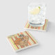 The coasters are gorgeous, a quality feel and heavy weight. They look like a precious archeological find. A rustic stone juxtaposed with a modern floral black and white print. I like the way the print goes slightly imperfect on the cut stone edges giving them a kind-of natural beauty.