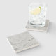 The coasters are gorgeous, a quality feel and heavy weight. They look like a precious archeological find. A rustic stone juxtaposed with a modern floral black and white print. I like the way the print goes slightly imperfect on the cut stone edges giving them a kind-of natural beauty.